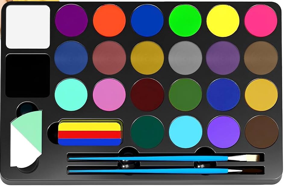 - Tintas próprias para a pele: É essencial utilizar tintas específicas para pinturas faciais, que sejam hipoalergênicas e seguras para a pele delicada das crianças.